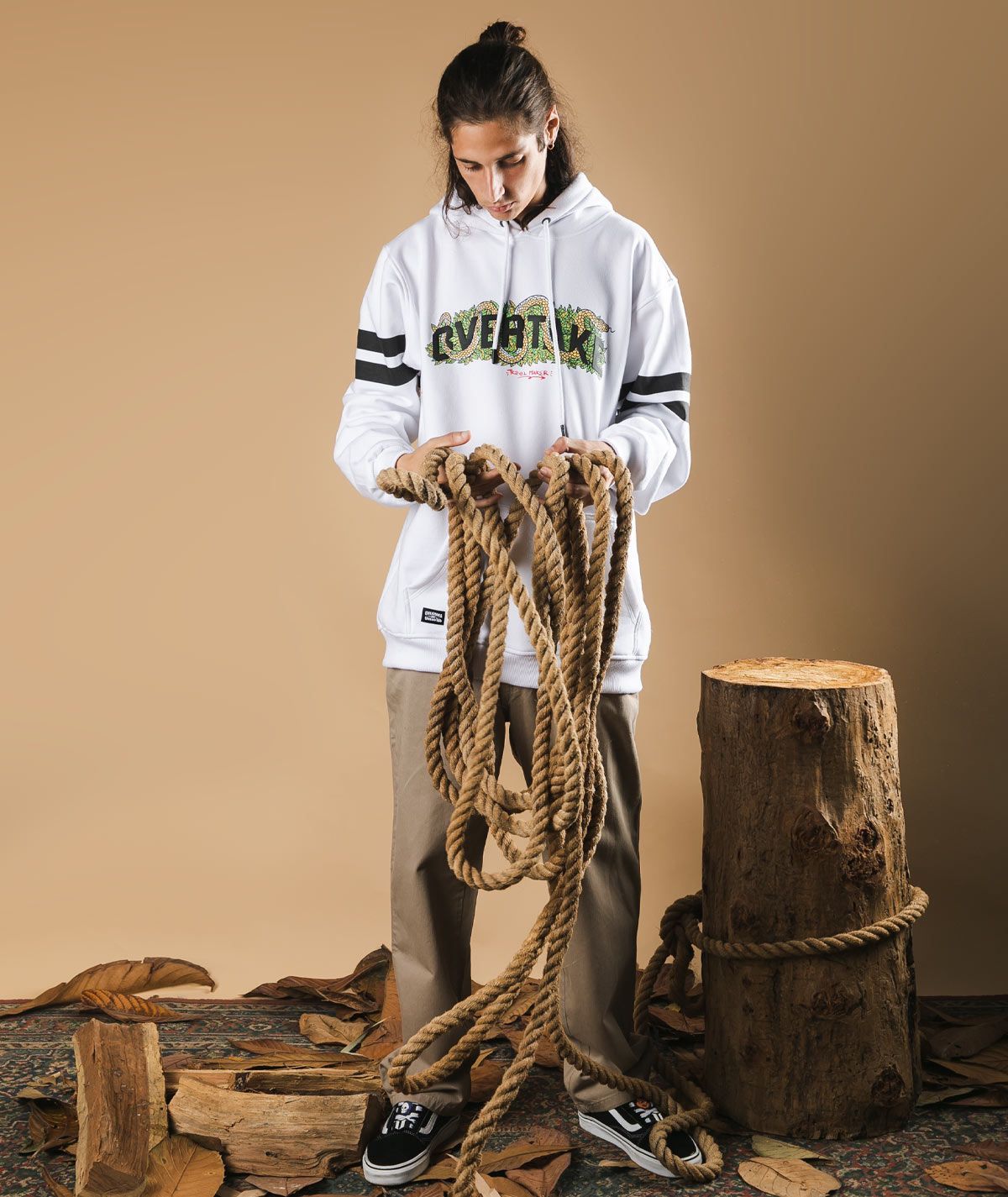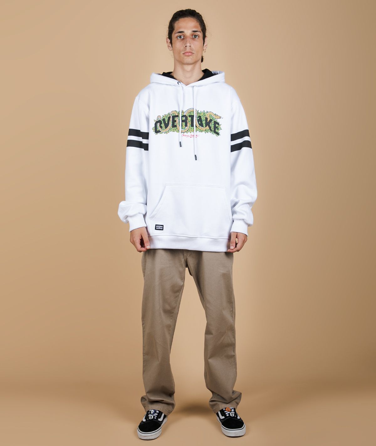 - Estampado plastisol diluido en las mangas.