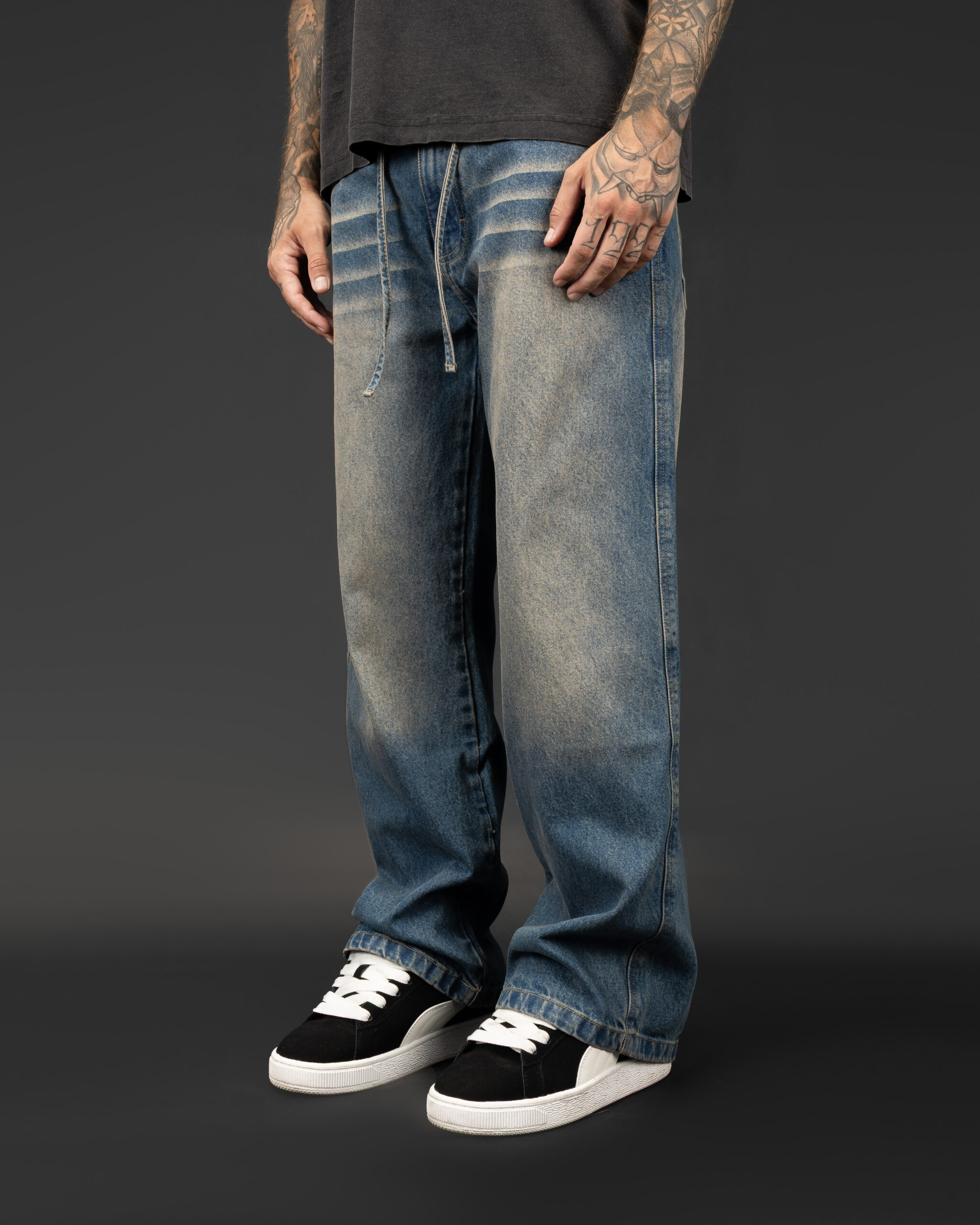 - Baggy Fit (corte holgado y basta ancha)