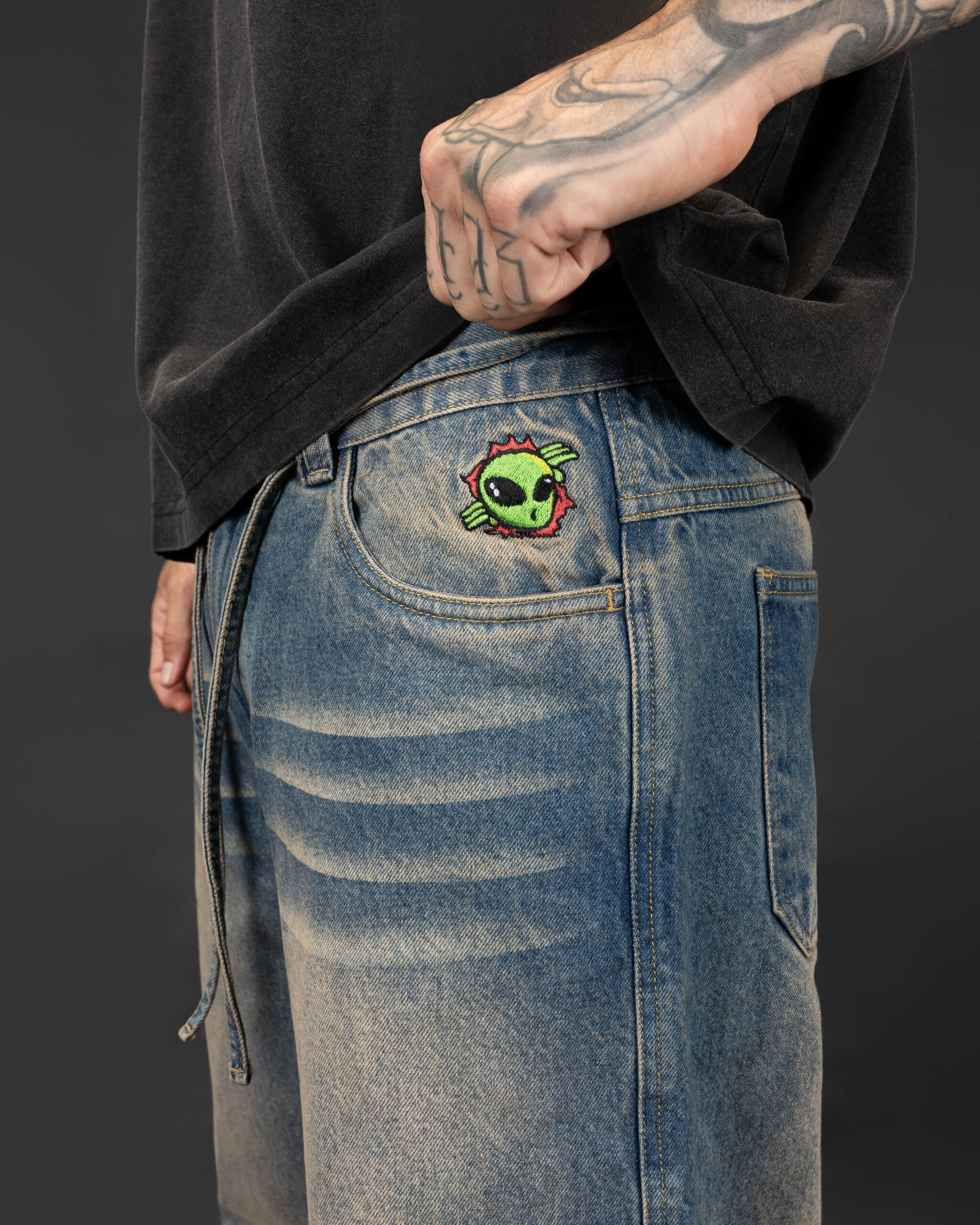- Bordado de Fly 👽 en bolsillo izquierdo